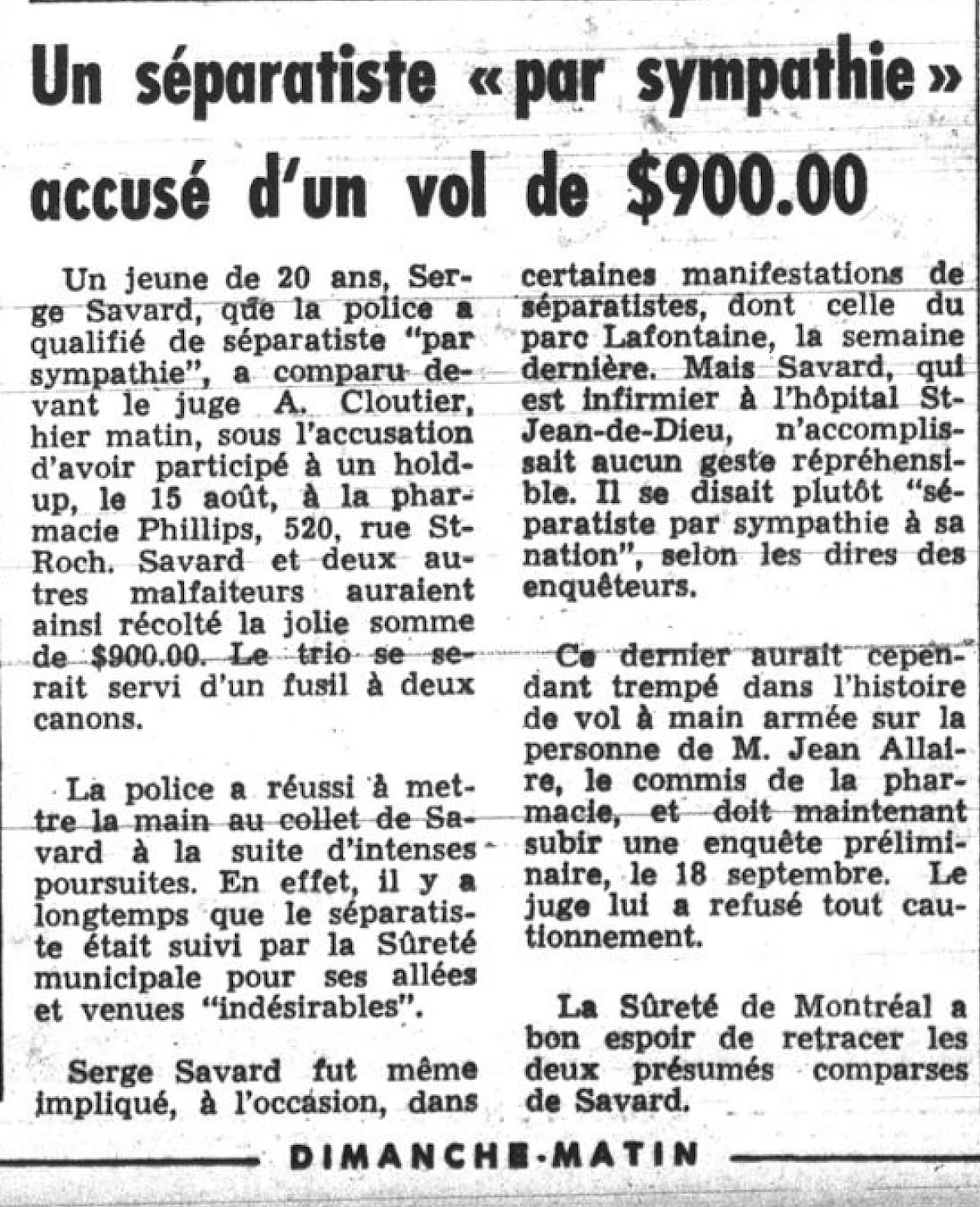 Dimanche-Matin, 13 septembre 1964